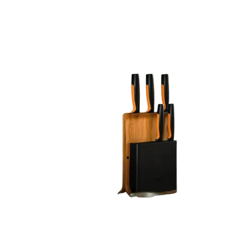 Fiskars zestaw 5 noży w bambusowym bloku – elegancki fiński design i funkcjonalność w jednym. Ostre noże z japońskiej stali nierdzewnej, stabilny blok z antypoślizgową podstawą i dodatkowa szczelina na nożyczki. Bezpieczne przechowywanie, cyrkulacja powietrza i wygodny dostęp podczas gotowania.
