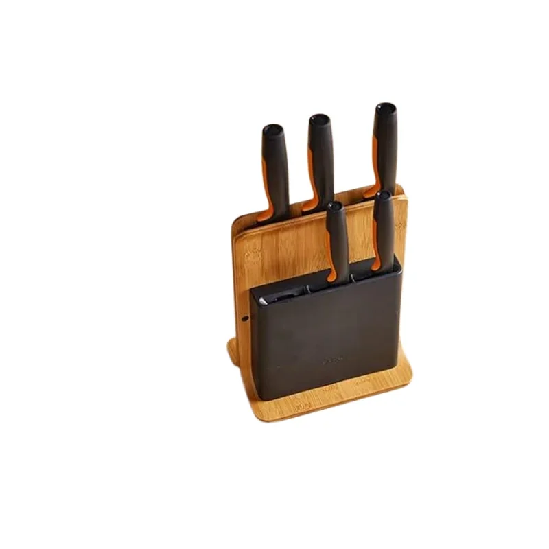 • Nowoczesny blok bambusowy – stabilny, kompaktowy i elegancki, z antypoślizgową podstawą.